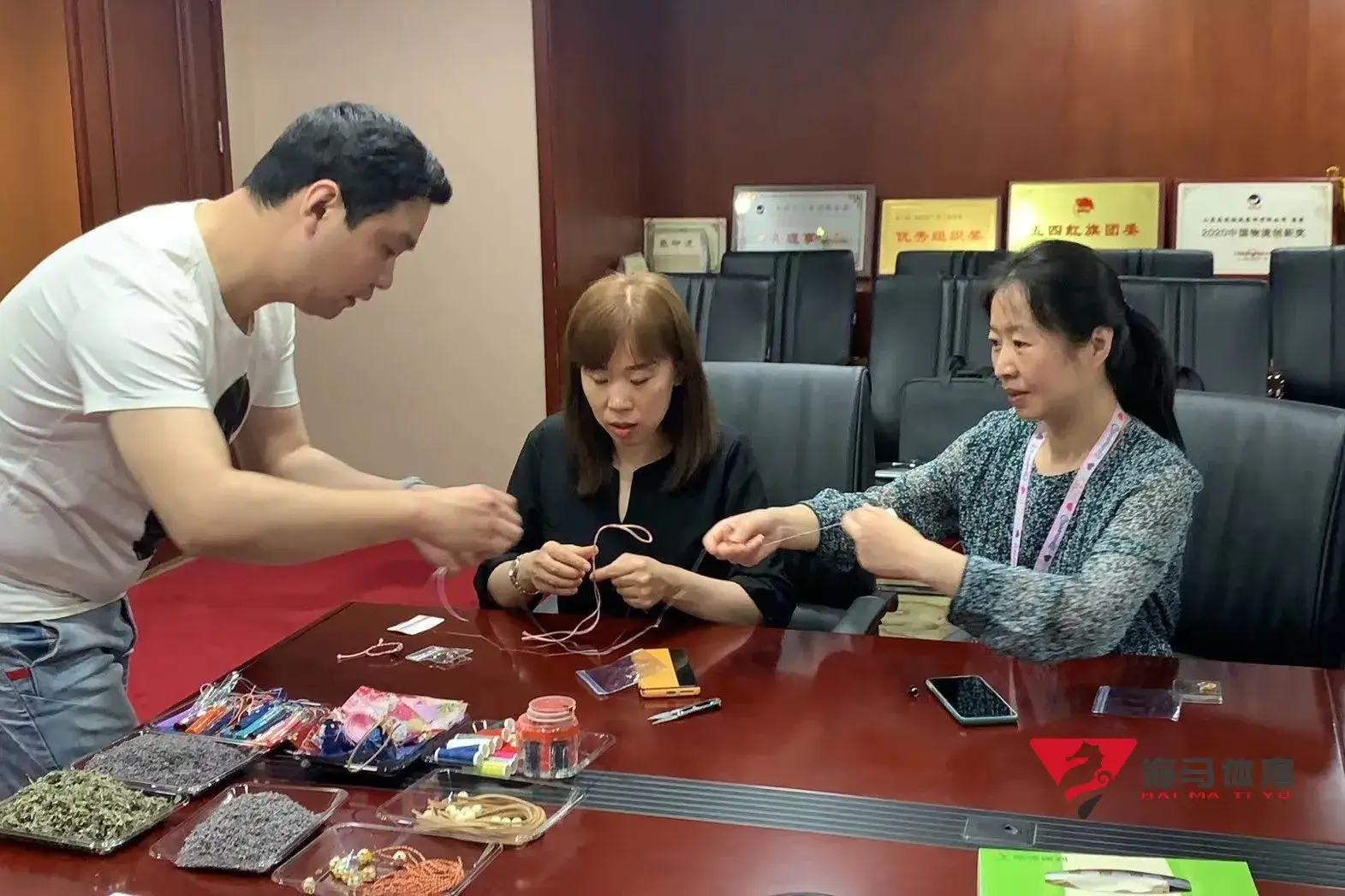 制作前,28圈的手工老师首先介绍了端午的习俗以及端午节制作香囊与五彩绳的来历,让大家在活动前了解端午的民俗文化,手工老师将精心准备的有着美好寓意的五色彩绳、色彩绚丽的香包袋以及清香的艾草薰衣草,送到职员手中,携手制作香包和五彩绳。